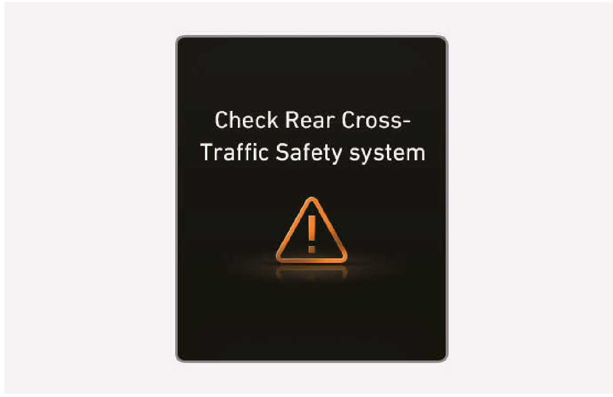 後方交會碰撞避免輔助無法正常操作時,“Check Rear Cross-Traffic Safety system” 警告訊息會在儀錶組顯示幾秒鐘,且主()警告燈會在儀錶組亮起。如果發生此狀況,我們建議您將車輛交由三陽汽車經銷商檢查。