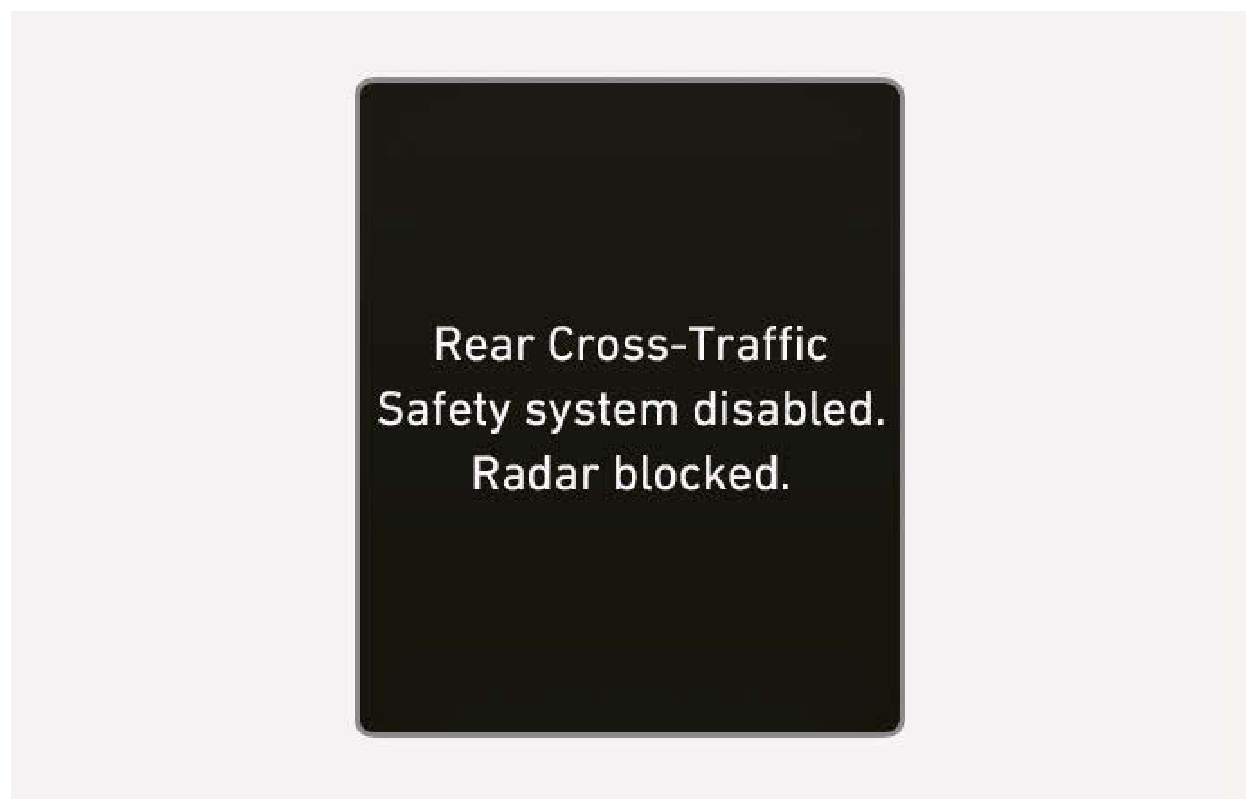 如果發生此狀況,“Rear Cross-Traffic Safety system disabled. Radar blocked.” 警告訊息會在儀錶組顯示。
