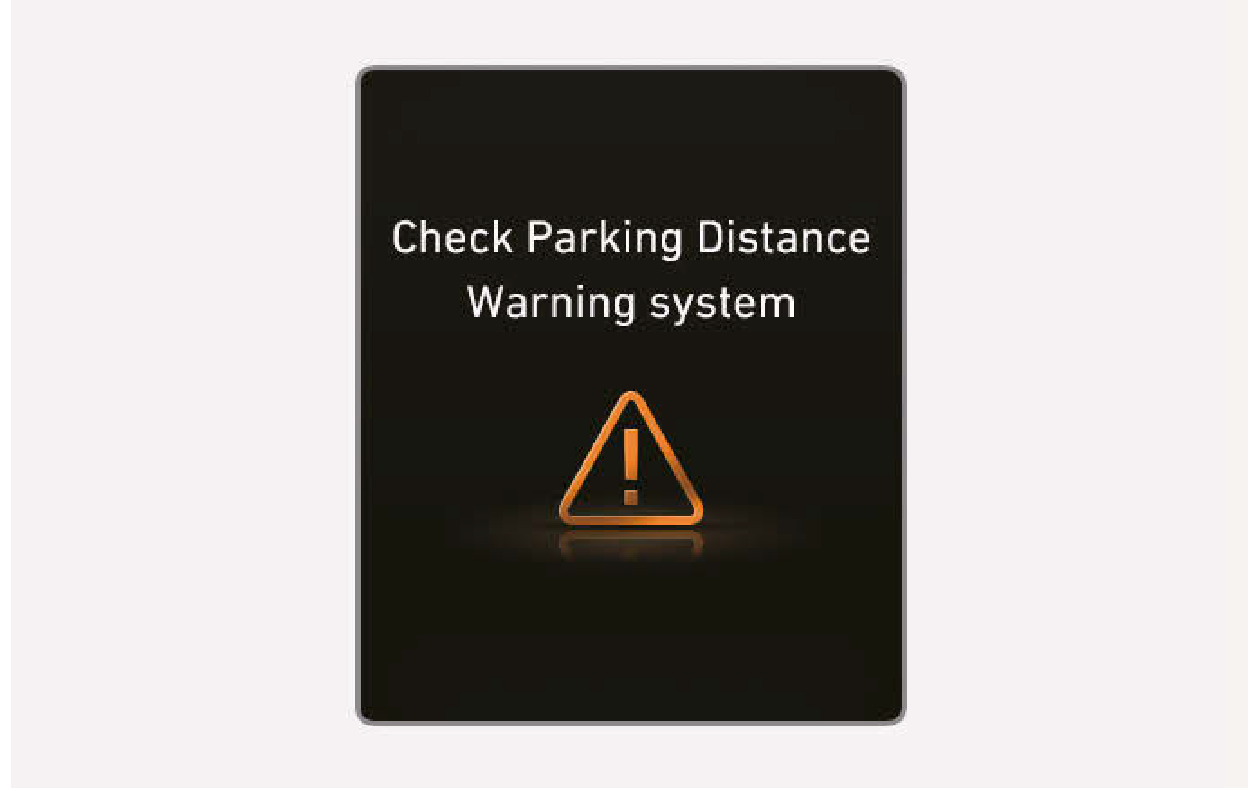 - “Check Parking Distance Warning system” 警告訊息在儀錶組顯示。