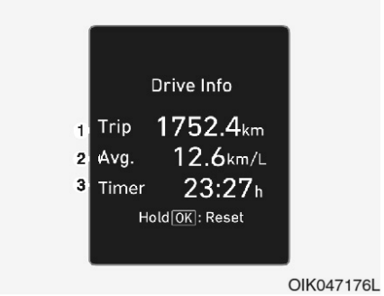 欲手動重設資訊時,可在查看駕駛資訊時按住 OK 按鈕。旅程距離、平均燃油經濟性以及總駕駛時間將會同時歸零。