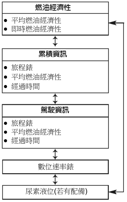 此資訊為每個點火循環的組合。然而,引擎熄火 4 小時或以上後,駕駛資訊螢幕將會重設。