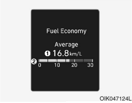- 此模式顯示車速超過 10 km/h 時,最近幾秒鐘內的即時燃油經濟性。