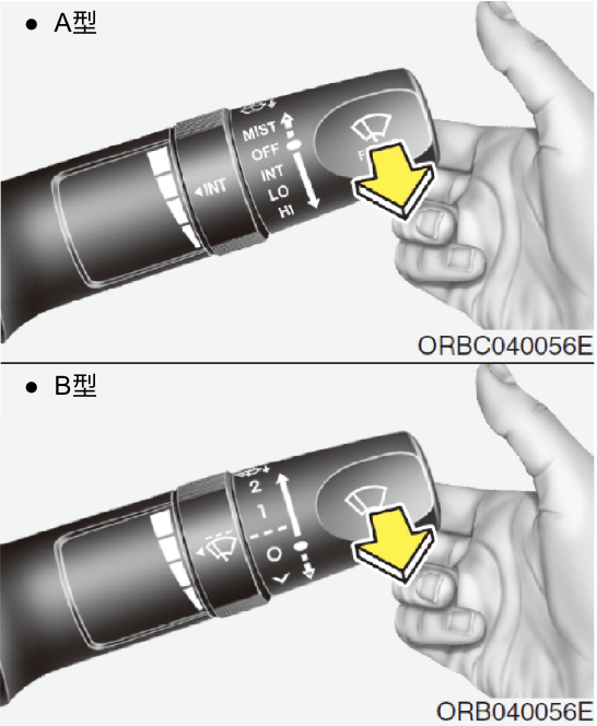 - 為了避免可能造成的雨刷或擋風玻璃損壞,不可在擋風玻璃乾燥時操作雨刷。