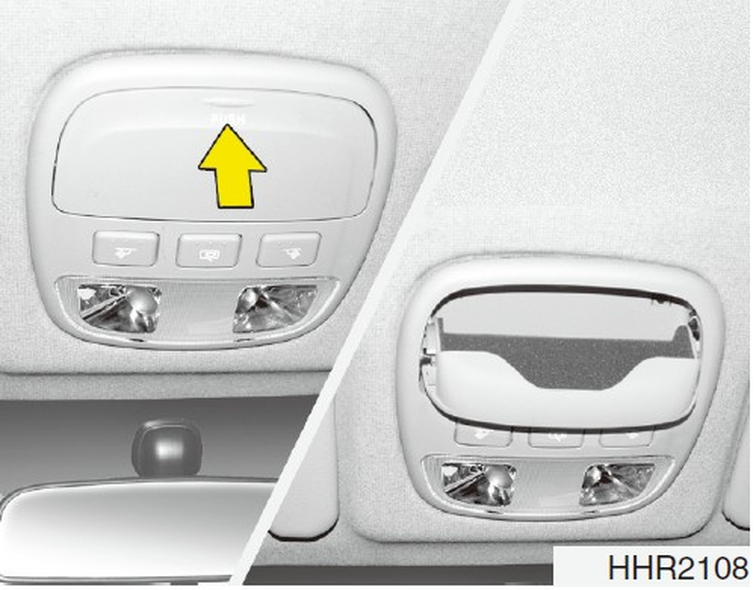 不可在眼鏡盒內放置尖銳或不合適的物品。如果發生緊急煞車或意外事故時,這些物品可能會拋出,並對車內的乘客造成傷害。
