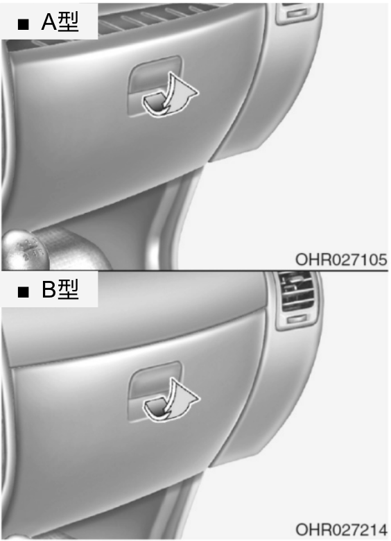 欲降低意外事故或緊急煞車時受傷的風險,車輛駕駛期間必須維持手套箱關閉。