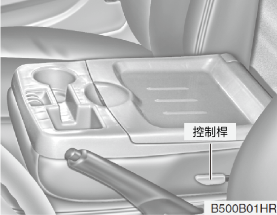 欲使用中控台置物盒時,將控制桿向下推並將椅背往前傾斜。