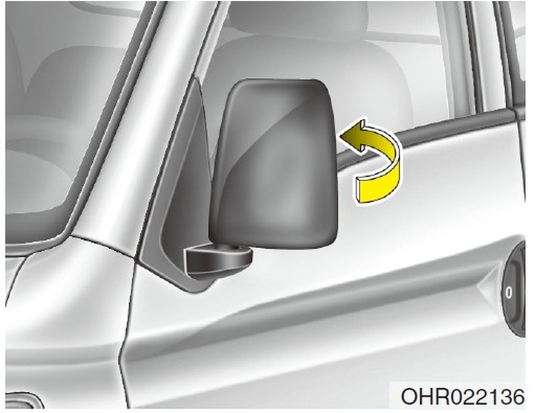不可在車輛行進間調整或摺疊車外後視鏡。如此會造成失控,並且可能會發生意外事故而造成死亡、嚴重受傷或財物損失。