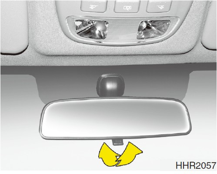您的HYUNDAI車輛配備有日/夜車內後視鏡。將後視鏡底下的垂片往您的方向撥到 “night” 位置。在 “night” 位置,可以減少您後方車輛頭燈的眩光。