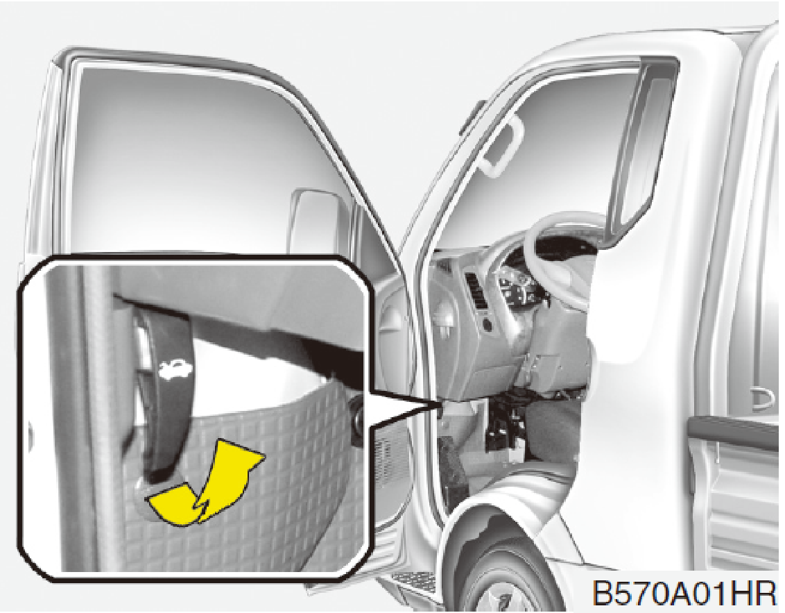 拉動釋放鈕,釋放引擎蓋鎖扣。