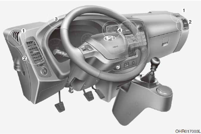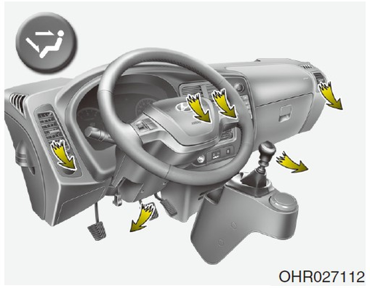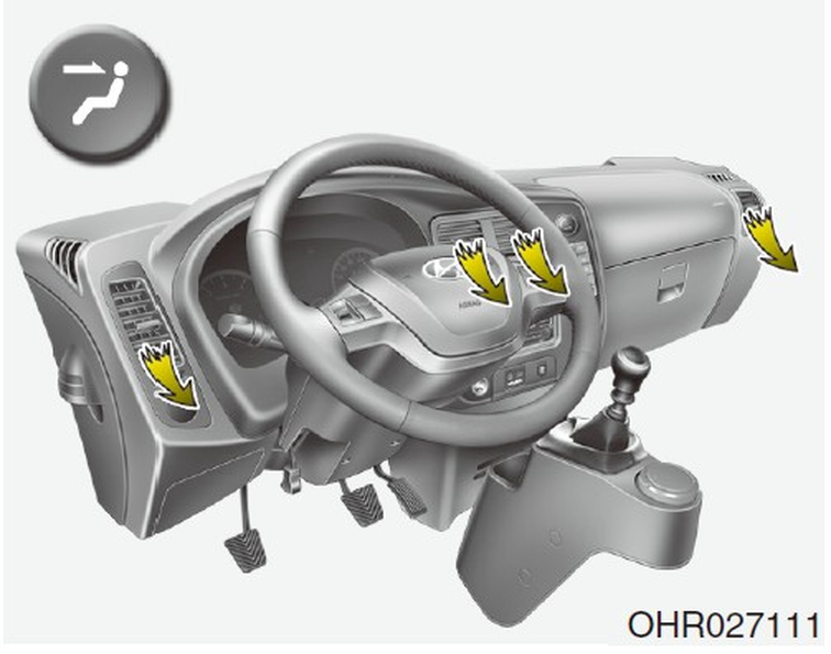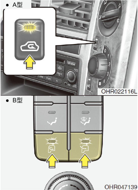 - 持續在車內循環模式下使用恆溫控制系統會造成困倦或瞌睡,並造成車輛失控。車輛駕駛時,儘量將空氣設定在車外(新鮮)空氣位置。