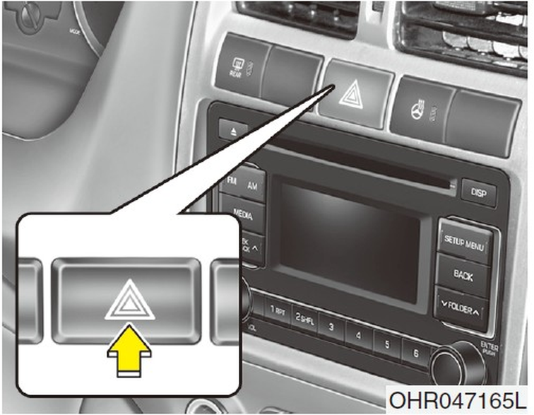 在點火開關於任何位置時,按下危險警告燈開關。危險警告燈開關位於中控台開關面板上。所有的方向燈將會同時閃爍。