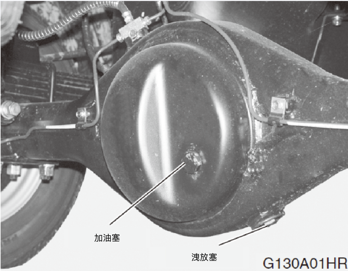 後軸齒輪油必須依據的7章中保養表規定的間隔進行檢查。