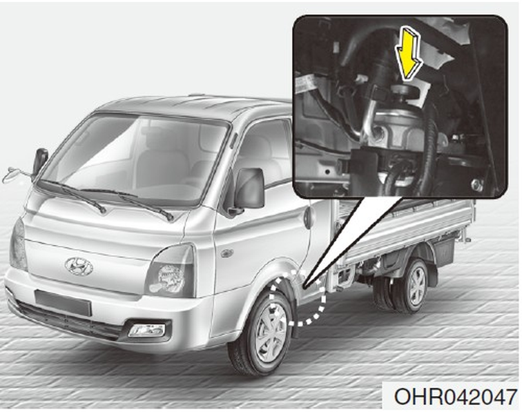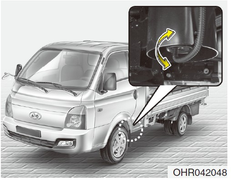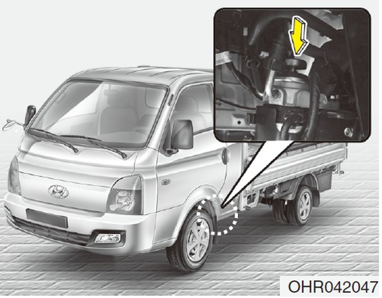 燃油濾清器位在駕駛座下方的車架。壓動手動泵浦,直到排氣塞流出的燃油沒有氣泡。操作時,在排氣塞附近用布遮住以避免燃油噴出。
