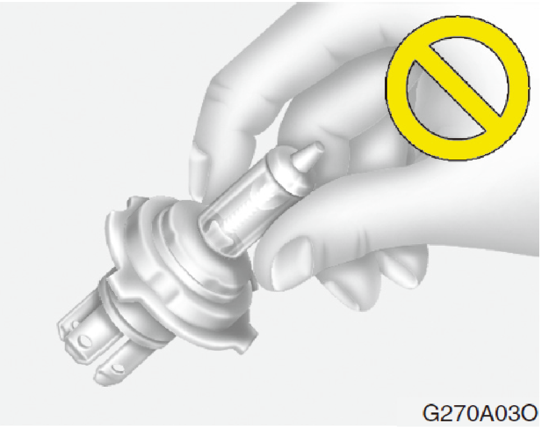 - 務必從燈泡的端子基座抓取,避免接觸玻璃部份。