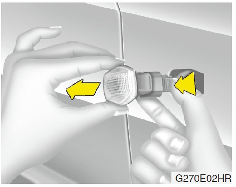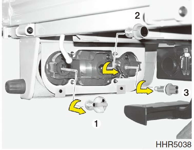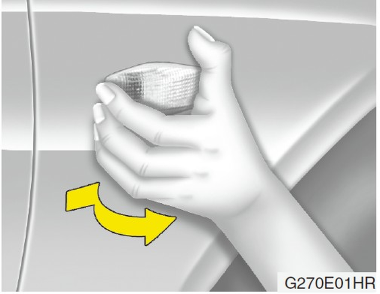 欲更換後燈組(煞車燈/尾燈,方向燈或倒車燈)時,將燈泡逆時針轉動,從固定座取出。