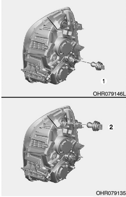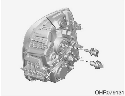 - 拆下燈泡零件的護蓋,並將塑膠基座和頭燈孔對證,安裝新的燈泡。重新安裝燈泡彈簧,並安裝防塵蓋。重新連接電源線。