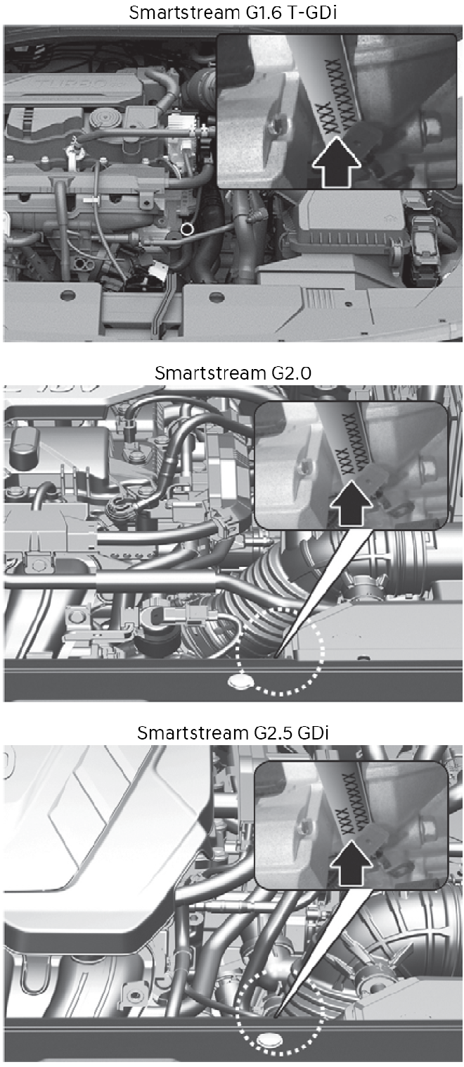 如圖所示,引擎號碼打印在汽缸體上。