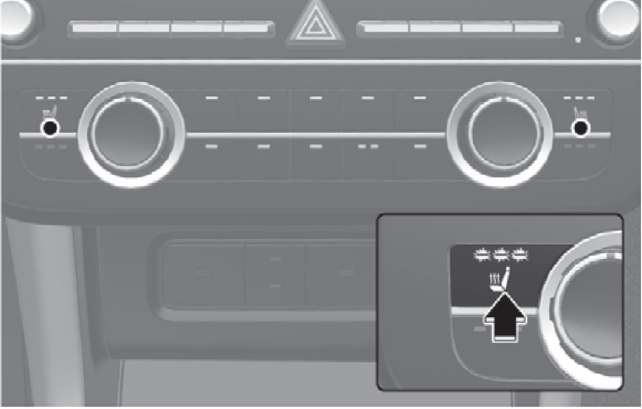 引擎運轉時,按下任一開關可將駕駛座或前乘客座加溫。