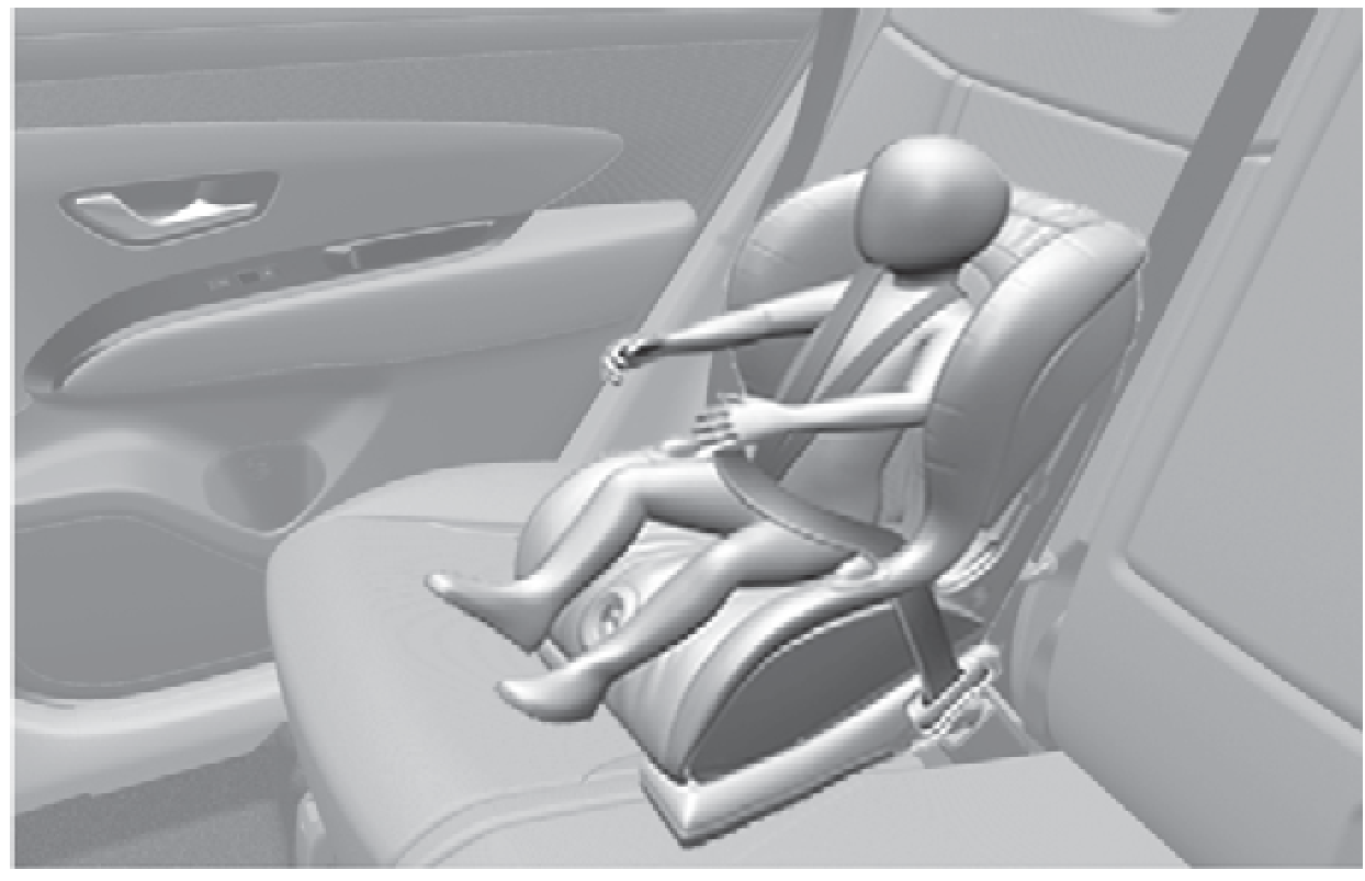 為了讓安全帶可以正確繫上,腰部安全帶必須跨過腿部上方而不是肚子。肩部安全帶必須跨過肩部和胸部,而不是頸部或臉部。13 歲以下的兒童必須正確保護,以便使意外事故發生、緊急煞車或突然操作時造成傷害的危險降到最低。