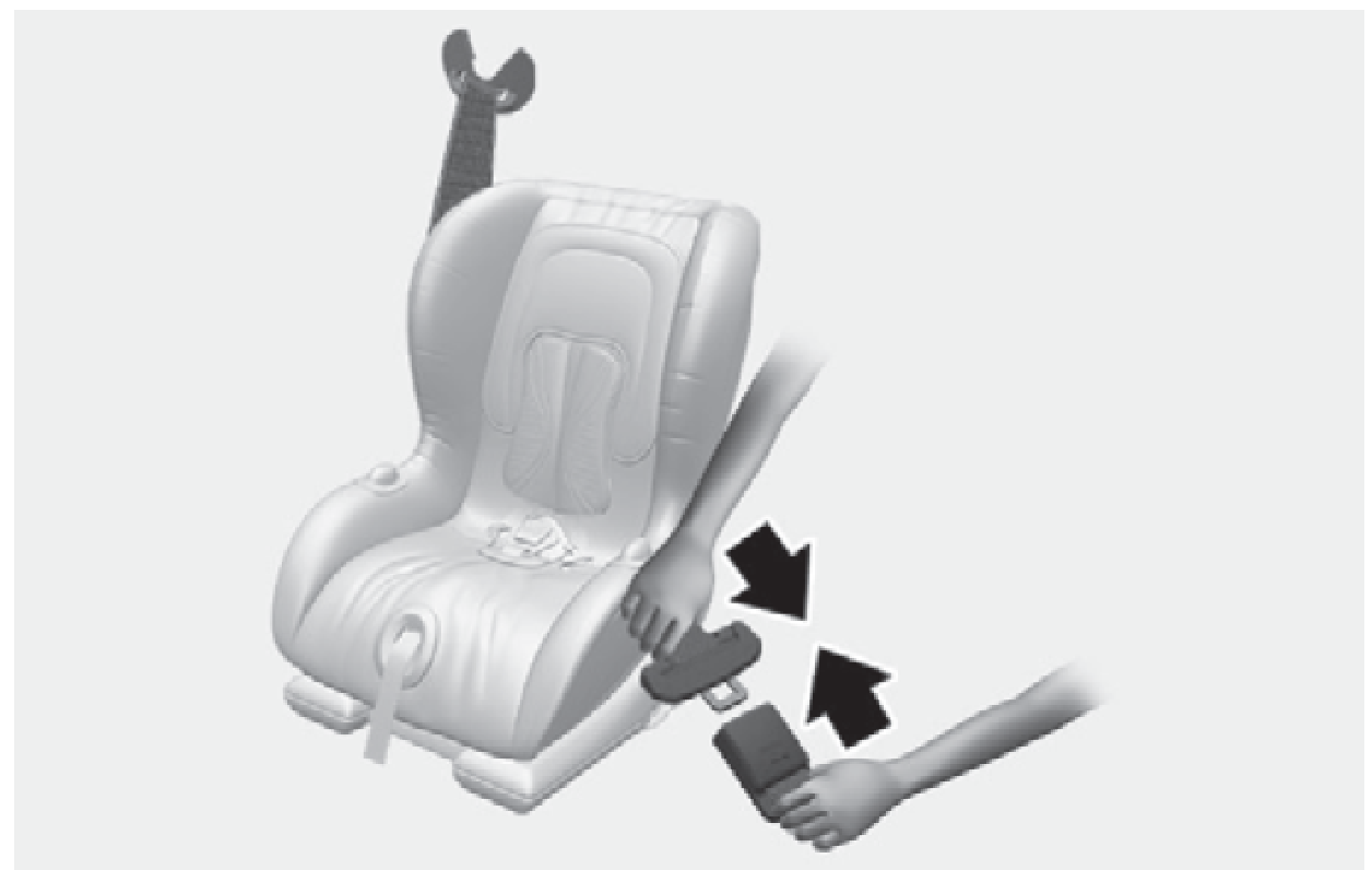 壓下兒童防護系統,儘量消除安全帶的鬆弛,同時將肩部安全帶退回捲帶器。