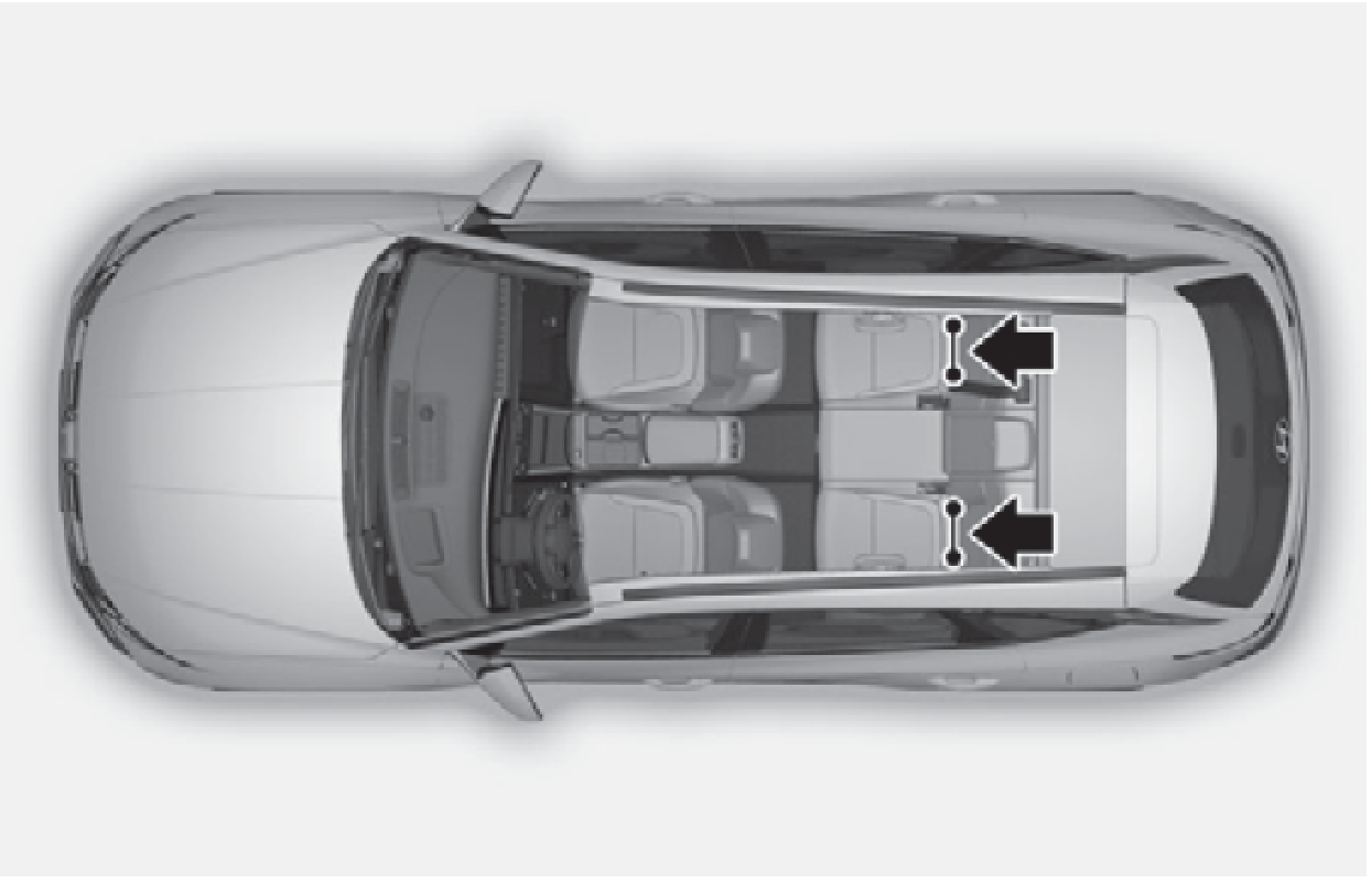 左後和右後外側座椅位置配備有 ISOFIX 固定器。其位置如圖中所示。