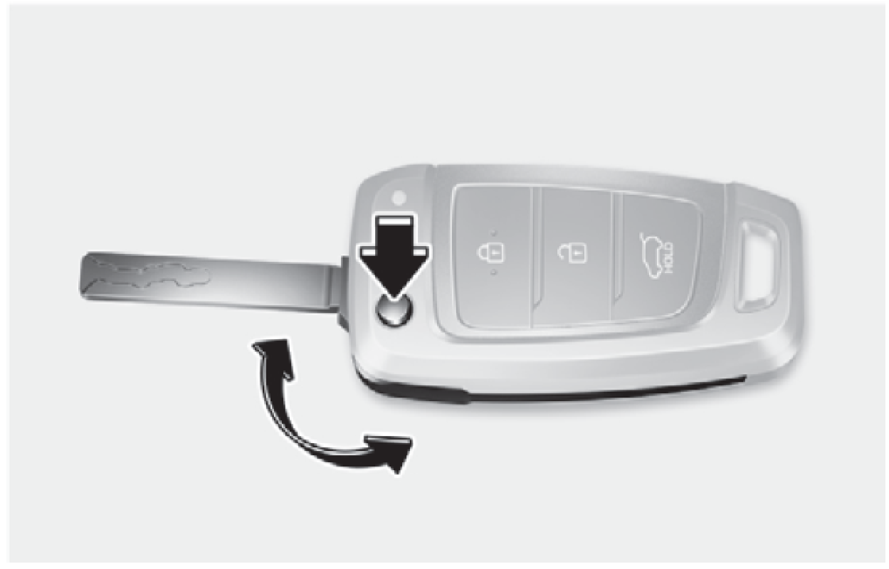 欲展開機械鑰匙時,按下釋放按鈕,鑰匙將會自動展開。