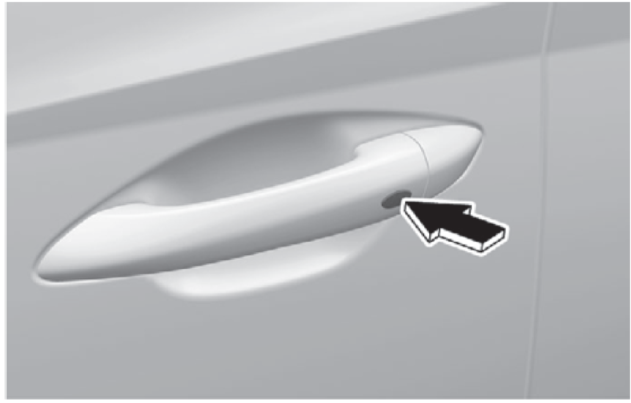 - 按下車門把手按鈕或按下智慧型鑰匙上的車門開鎖按鈕(2)。