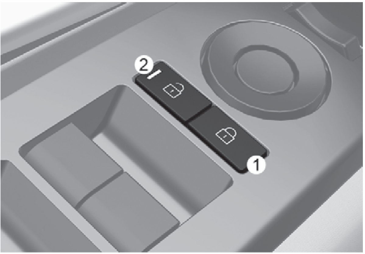 - 按下開關的()部位(2)時,所有車門將會開鎖。