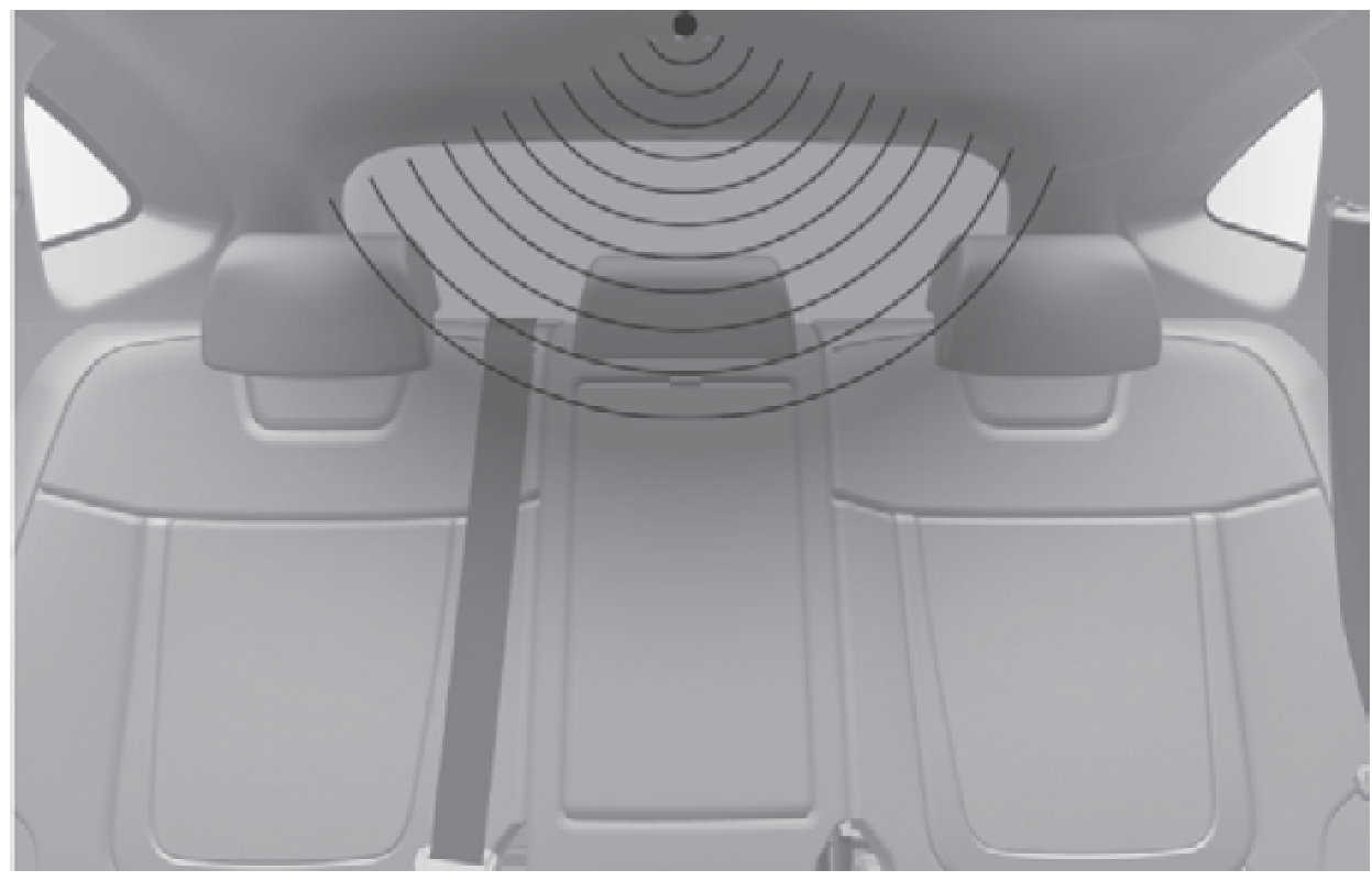 - 此系統旨在偵測乘坐在後座的嬰兒的移動。但偵測到駕駛座或乘客座有移動時可能會導致錯誤提醒。