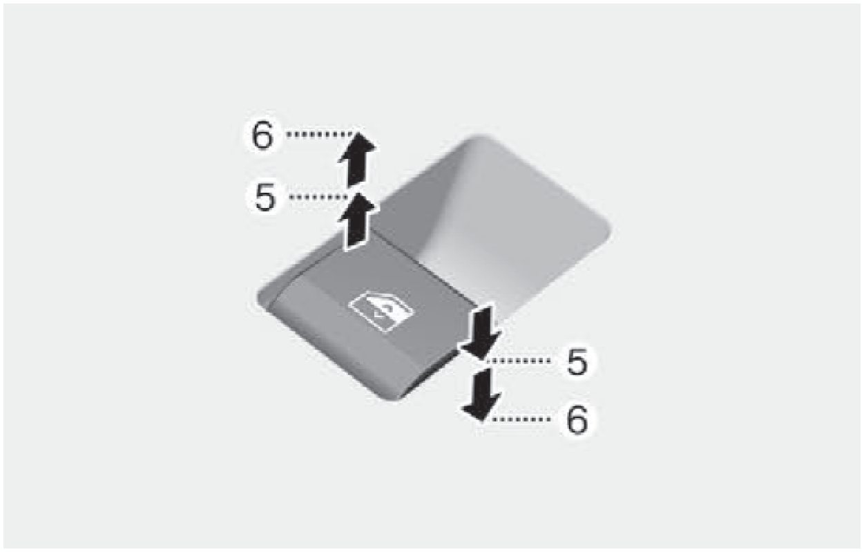 將車窗開關拉起到第一段位置(5)。想要車窗停止時,釋放電動窗開關。