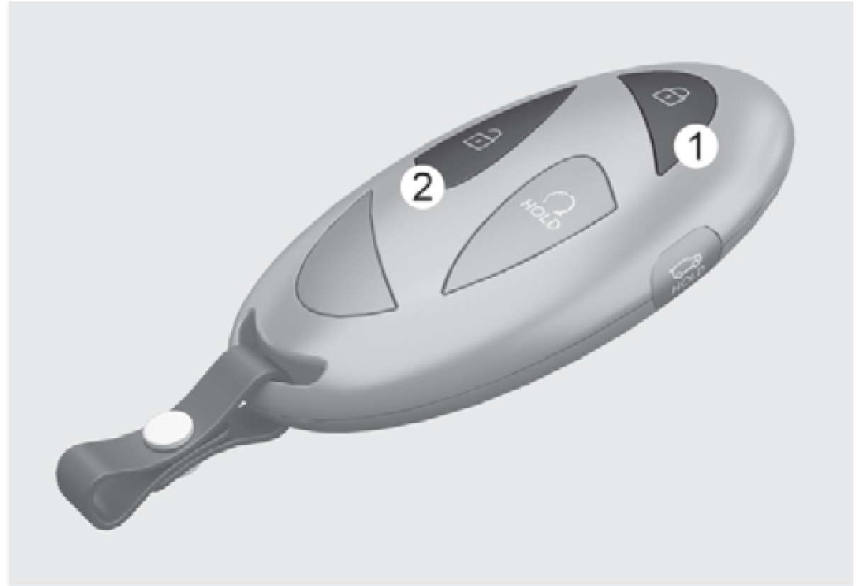 - 車門開鎖後,按住車門開鎖按鈕(2) 3秒以上,前車窗會下降。釋放車門開鎖按鈕時,車窗會停止移動。