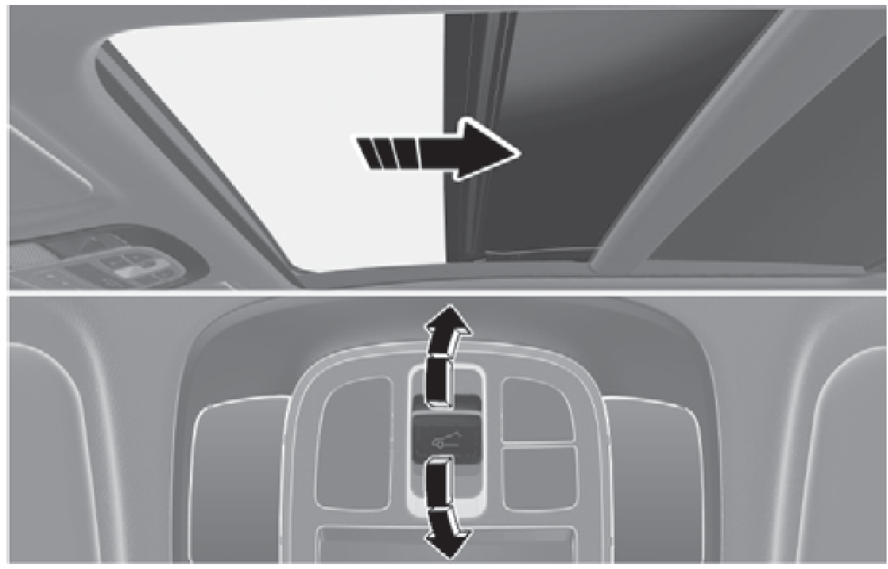 欲使電動遮陽板停在任何位置時,可按下天窗開關的任一方向。