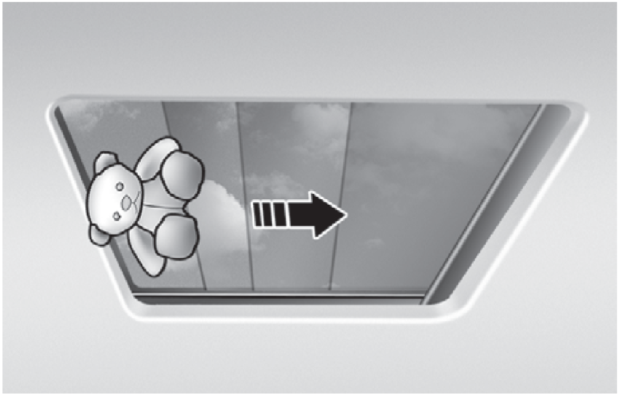 - 天窗完全打開、關閉或傾斜後,不可持續按下天窗開關。否則可能會使天窗馬達損壞。