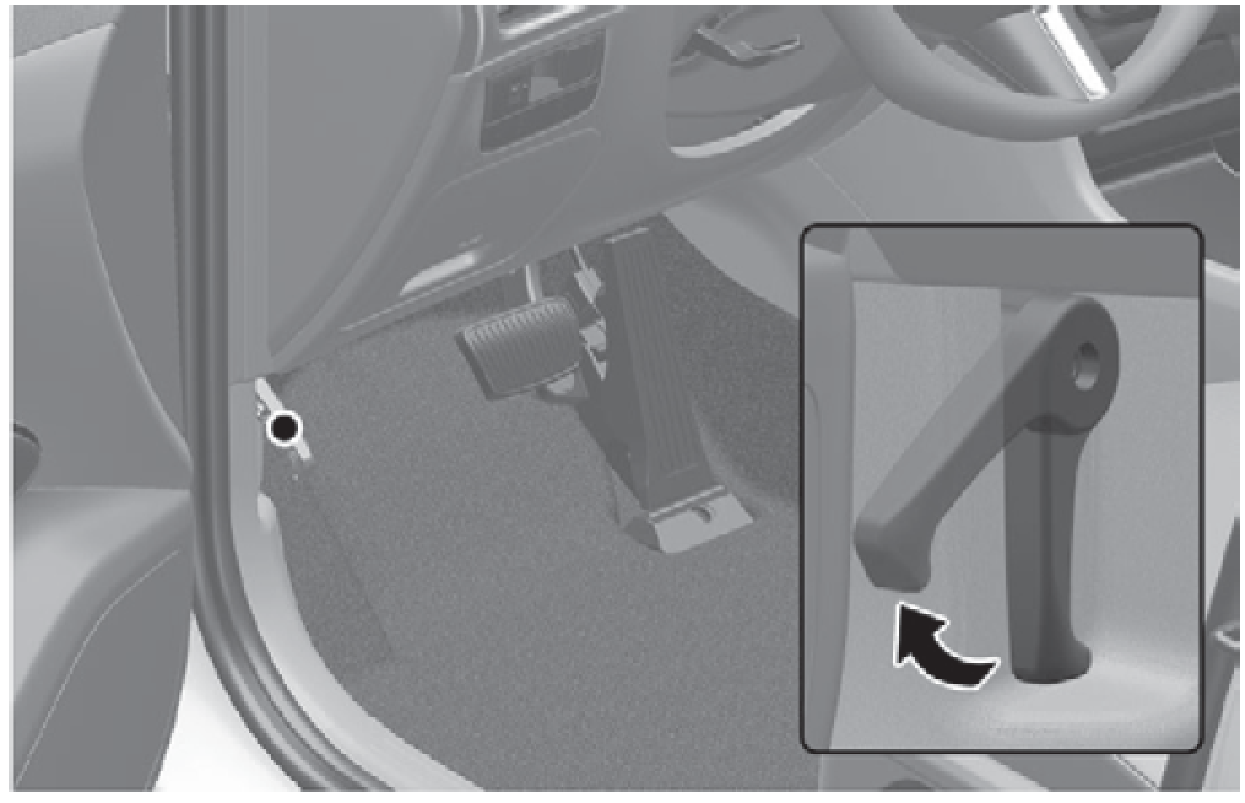 拉動釋放桿使引擎蓋開鎖。引擎蓋必須稍微彈開。