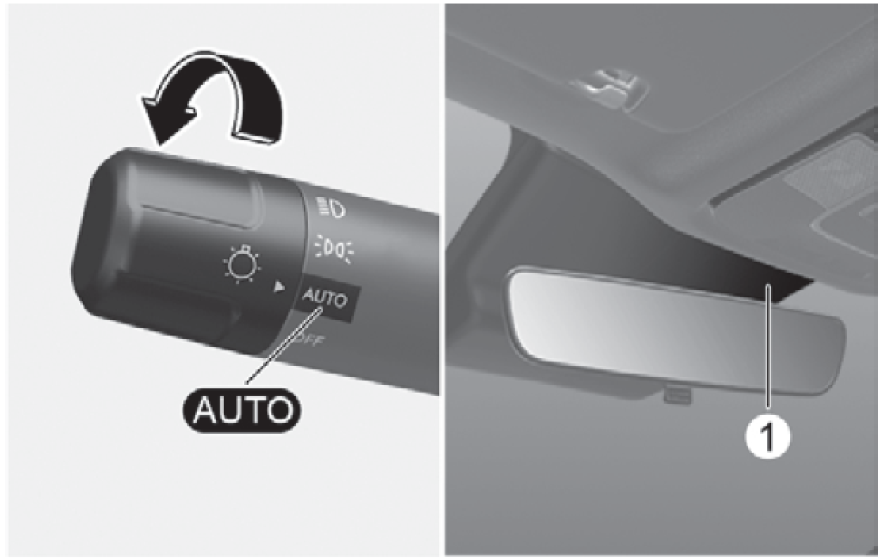 位置燈和頭燈將會依據儀錶板前方的環境光線感知器(1)測得的陽光量自動打開或關閉。