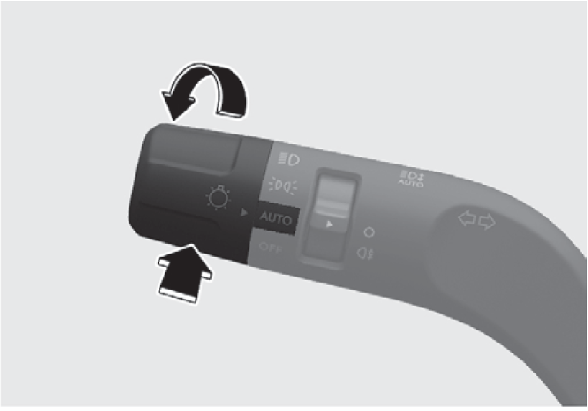 - 將頭燈開關設定在AUTO位置並將頭燈控制桿推向儀錶組。智慧前照明系統()指示燈會在儀錶組亮起,且系統會啟用。